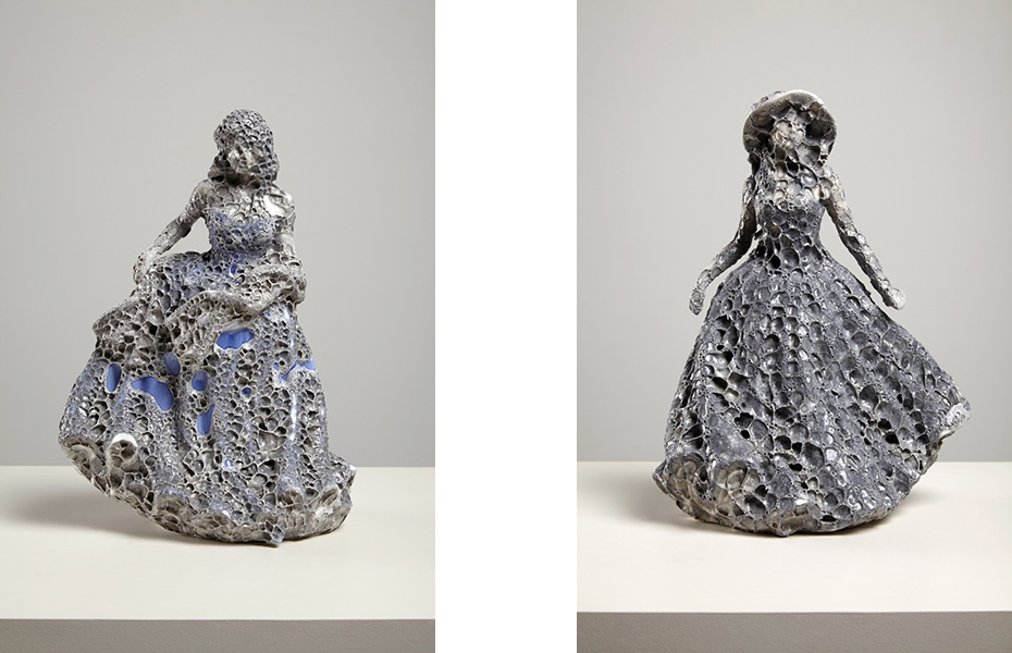 Jessica Harrison (née en 1982) vit à Edinburgh en Écosse depuis qu’elle y a emménagé pour étudier la sculpture en 2000 au College of Art, des études aboutissant à un PhD en sculpture soutenu en 2013 et subventionné par le Arts and Humanities Research Council. Si le point de départ de chacune de ses séries est toujours différent, toutes prennent une suite logique dans un projet de recherche à plus grande échelle sur la «tactilité» et le corps dans la sculpture. Ses oeuvres traduisent sa fascination pour le corps humain (son mémoire de Master portait sur la mort et la dissection dans l’art contemporain britannique), l’impossibilité de ce dernier à résister à plus de 100 ans et la crainte omniprésente quant à la mortalité dans notre société. Les images que Jessica utilise sont le fruit de curiosités vues et recueillies à travers son imaginaire. C’est en prenant l’habitude de regarder la collection de céramiques de sa mère et en imaginant abattre une tête par ci, un bras par là, et ce que cela donnerait si tout se mettait à saigner, qu’elle s’est mise à transformer des figurines en porcelaine de bergères ou de jeunes filles un brin kitsch, en les estropiant d’un oeil, d’un organe, devenant une petite armée de morts-vivantes gores.