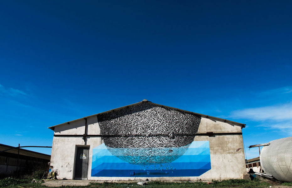 Au cours des cinq dernières années Tellas a peint dans plusieurs villes européennes et en Italie, prenant part à un certain nombre de festivals street art (voir les wall paintings qu’il a réalisés pour Nuart, Katowice Street Art Festival, Le 4e Mur) et collaborant avec des artistes de cette scène tels que Ericailcane, Blu, Dem, Moneyless (également présent dans l’exposition Paragone à la galerie), 108, et d’autres.